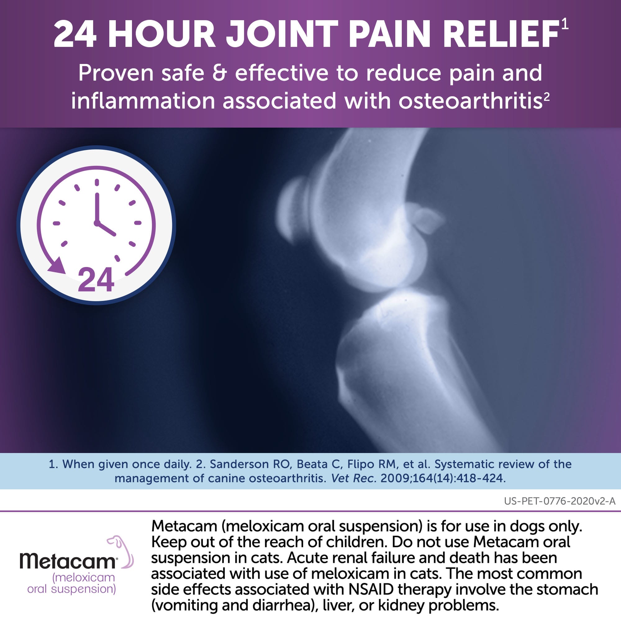 . There are two non-steroidal anti-inflammatory drugs NSAIDS that are FDA-approved for short-term use. Thank you for the information on Metacam in Cats. Metacam is available in an oral solution form and injectable form.